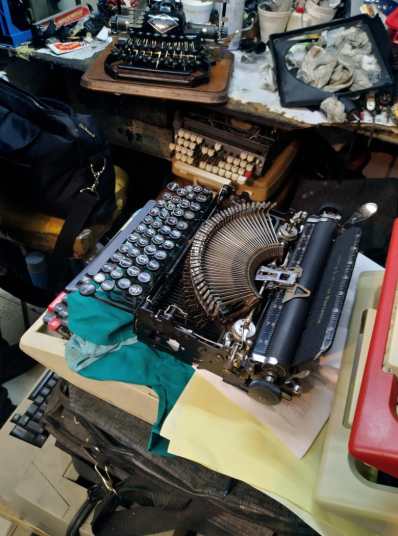 En ese lugar tan reducido se arregla todo tipo de máquinas y, en el día de la entrevista, el maestro Curi estaba reparando una Blickensderfer 1. A la venta tiene pocas, pues la venta no es su giro, sino la compostura. Aun así, para vender tenía una Olympia SM7 con letra itálica, una Smith Corona Medalla de Oro, y una Royalite. Lucio vendía una Smith Corona eléctrica y el señor Coria una Olympia SM3 sin “copete”, es decir, sin la cubierta superior.