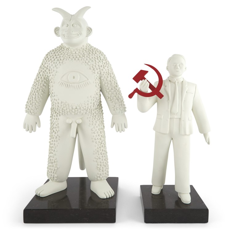 Grisha Bruskin, seudónimo de Grigory Davidovich Bruskin, nació en Moscú en 1945 y vivió la época totalitaria de la Unión Soviética cuando el terror de la KGB controlaba los sueños disidentes y partidarios, nadie pensaba en la caída del muro y el comunismo soviético era poderosamente invencible. Bruskin fue un artista desconocido y rompió el anonimato con su participación en la subasta de Sotheby en Moscú en 1987, en la que presentó una colección de platos de porcelana ornamentados con figuras míticas soviéticas y judías y a lo largo del borde de los platos diferentes leyendas escritas en letras de oro criticando de manera irónica el régimen comunista, una de esas leyendas fue un fragmento del monólogo de Pavel Korchangin, instando a la vida sacrificada en nombre de la felicidad de la humanidad. Esta fue la primera obra post-stalinista que conoció el mundo occidental y sin lugar a duda esta puja de arte fue un parteaguas en la vida de los artistas rusos. Bruskin pasó exitosamente a ser un artista mundialmente reconocido y una semana después de la subasta viajaría a lo estados Unidos donde reside actualmente.